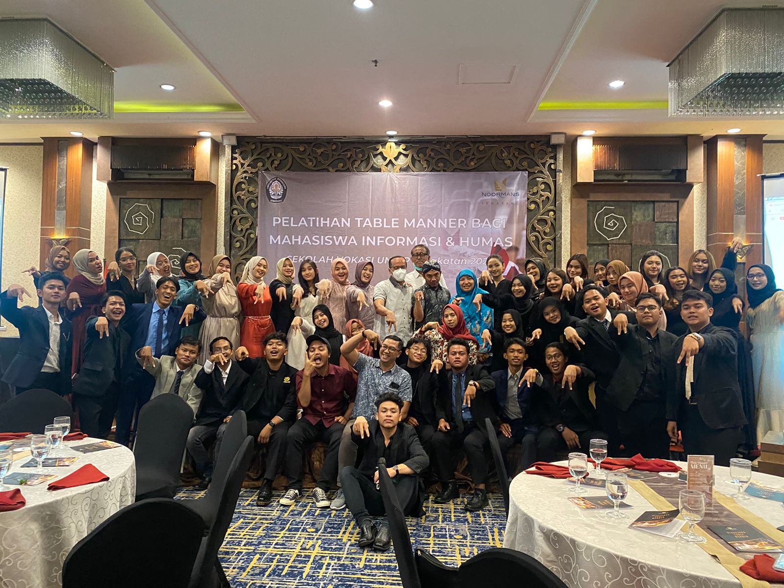 Semarang – The Bachelor of Information and Public Relations held a Table Manner Training for 2021 students. The event, which was held on September 9, 2022, was attended by 178 student participants at the Noorman Hotel, Semarang. Table Manner training focuses on how to shape personality when meeting with clients through sitting, walking, and serving procedures. This event is a training that is conducted periodically from year to year by the Study Program and must be attended by all Information and Public Relations students.