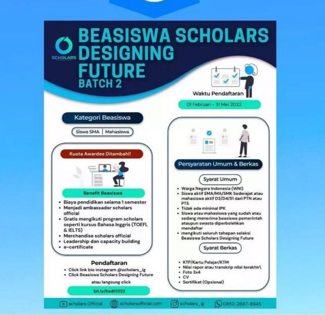 Further information regarding the 2022 Scholars Designing Future Scholarship application can be accessed through the official instagram account at @scholars_ig